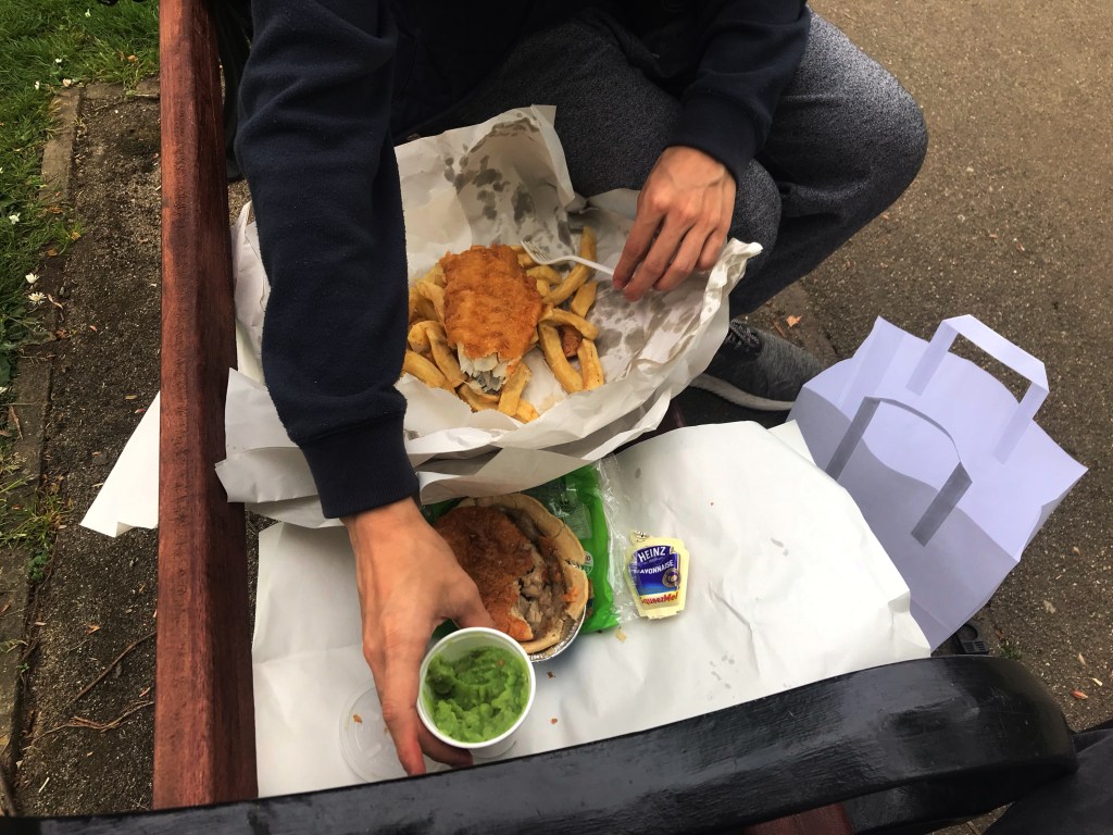 fish and chips and the pie that took a piss on me