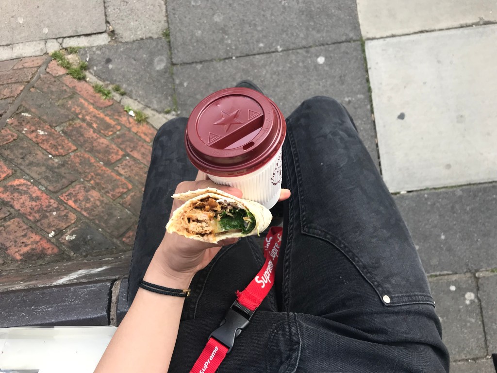 I began to lose consciousness after stuffing myself with as much vegan curry over rice as my stomach could possibly handle at Indian Veg. I ended on a gulp of cold water even in the face of questionable advice signs such as “cold water causes heart disease.” But, as if my cold water didn’t increase my chances of heart disease enough, I walked over to a Pret near Angel station to wash down my incoming food coma with a cup of coffee.